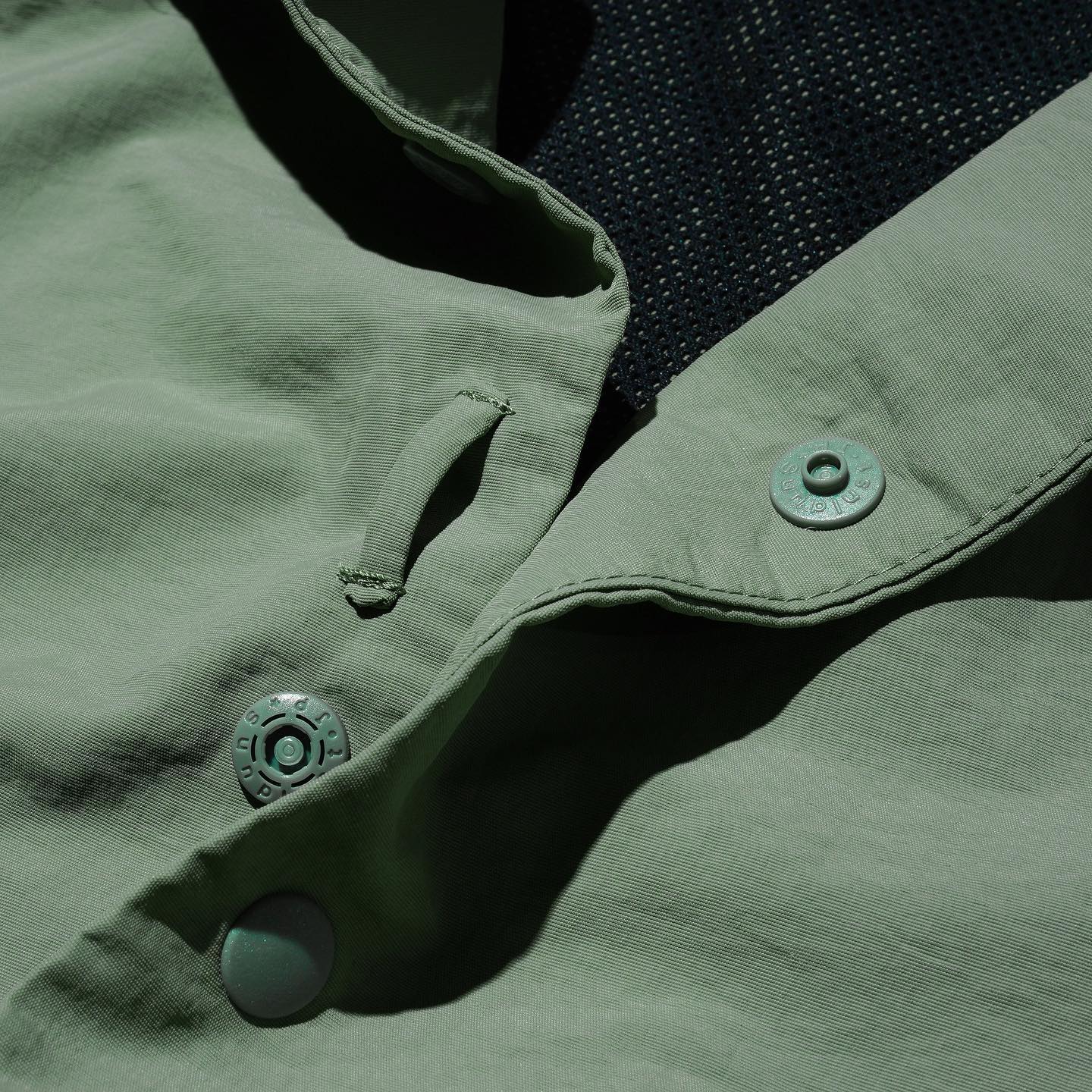 在第二和第三粒膠鈕之間加上織帶圈這設定,令用家更方便的放置太陽眼鏡。 再換上由日本公司TOKAITAC Group生產的膠鈕,在使用質量上大大提升。這些設計也為”SPOCS”的細節加上點綴。